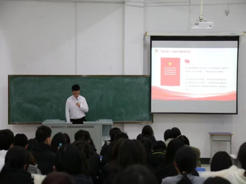 为坚持推进“四史”学习教育走深走实,开展多元化的“四史”学习教育,帮助同学们树立对党的认识,激发对党的信仰和追求,法学院于11月26日在勤学楼201教室开展“深入‘四史’,弘扬宪法精神”知党向党爱党教育活动。本次活动由2022级刘欣昊同学主讲,学工办主任李成杰老师指导,法学院2023级全体同学积极参加。