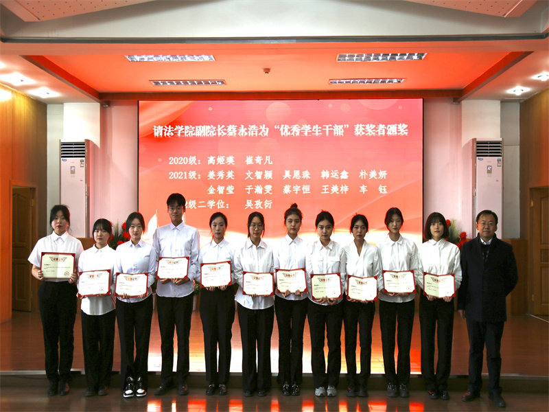 为选树先进典型,发挥榜样引领作用,营造勤学苦练、积极向上的校园氛围,2023年12月13日下午,必赢线路检测3003no12022-2023年度学生表彰大会在求真楼7楼报告厅隆重举行,法学院党委书记徐炳煊、法学院院长尹太顺、党委副书记郑仁顺、副院长蔡永浩、教科办公室主任韩海燕、学院办公室主任全玉善、团委书记金玲出席会议,大会由学工办主任李成杰老师主持。