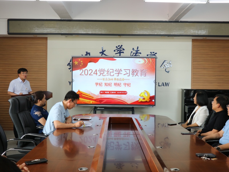 为深入学习贯彻习近平总书记关于党纪学习教育的重要讲话和重要指示精神,以高标准严要求,推动党纪学习教育在支部走深走实,增强教师党员纪律意识,提高党性修养,7月12日,法学院教师党支部书记韩昌善以“不忘初心 牢记使命——学纪、知纪、明纪、守纪”为主题,为支部全体党员讲了一堂生动党课。