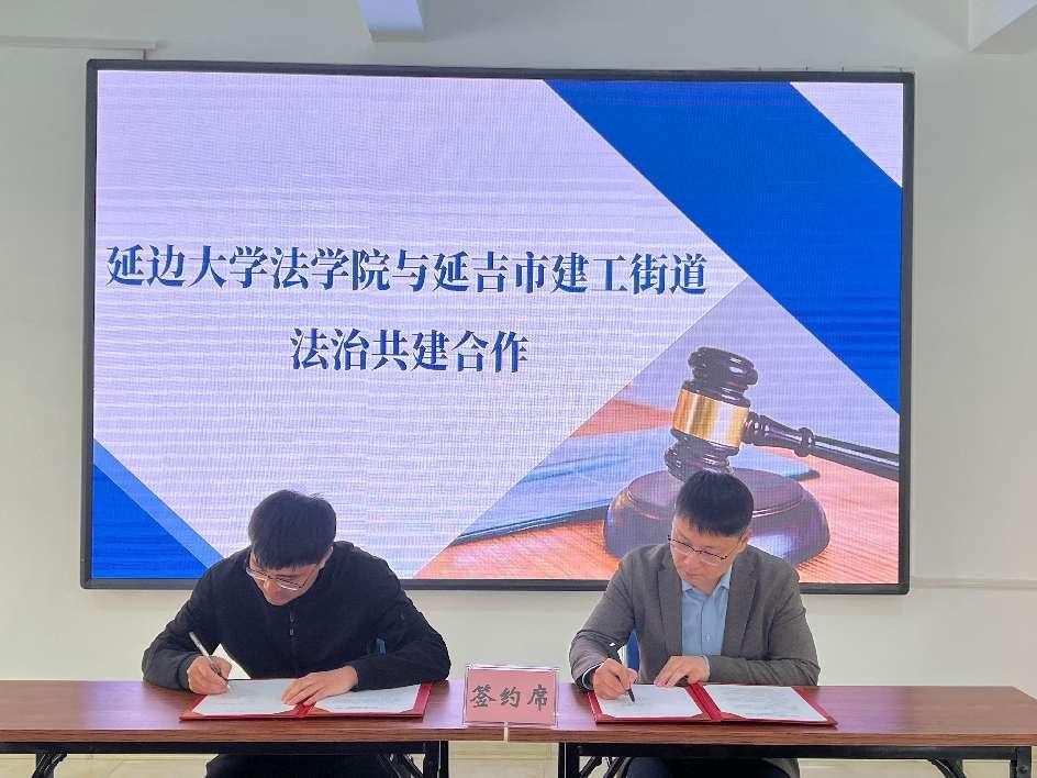 4月11日上午,法学院与延吉市建工街道在延春社区举行基层法治与法治人才培养共建合作协议签约仪式,法学院副院长景明浩,法学院教师党支部书记韩昌善,建工街道党工委副书记、办事处主任陈红丹,市人大常委会建工街道工委副主任韩昌学共同参加活动。此次合作以“法学赋能基层治理”为核心,紧扣“基层法治建设”与“法治人才培养”双主线,通过高校与地方基层资源深度融合,构建“法学教育实践路径创新、社区法治服务能力共促” 的双向赋能“共生模式”,为基层社会治理现代化注入法治人才动能与治理创新活力。