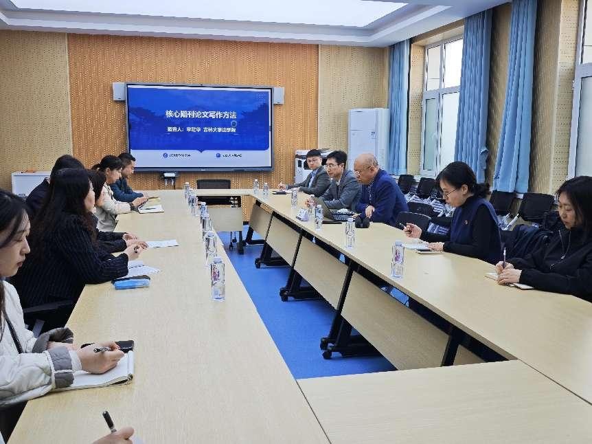 2025 年 4 月 24 日下午 ,必赢线路检测3003no1学术氛围浓郁,一场聚焦论文写作的思想盛宴在院内展开。吉林大学法学院李建华教授应邀作《核心期刊论文写作方法》讲解及座谈会,吴东镐院长主持会议,法学院全体教师参与,共同探寻学术论文写作的奥秘。