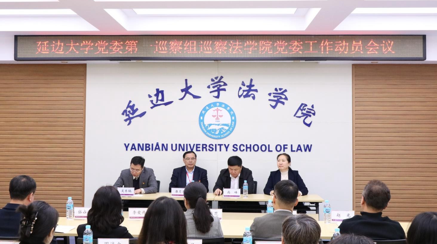 党委第一巡察组副组长李爱丹、张占波及全体成员,法学院党委班子成员、全体教职员工、近三年退休教职员工代表、学生代表参加会议。