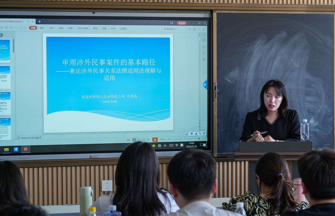 本次讲座中,叶明晶老师以“涉外民商事案件的审理路径”为主题,详细为同学们讲解了民法典与涉外民事关系法律适用法中关于涉外案件的界定以及审理过程中常用的国内法律法规和司法解释适用等问题。同时也强调了构成涉外民商事案件审理路径的关键环节,通过“涉外民事法律关系的识别”“涉外案件‘法律关系’的认定及管辖权的使用规则”“案件适用实体准据法的确定”“外国法查明”四个环节,向同学们讲解了涉外民商事案件审理中的核心问题与操作方法。
