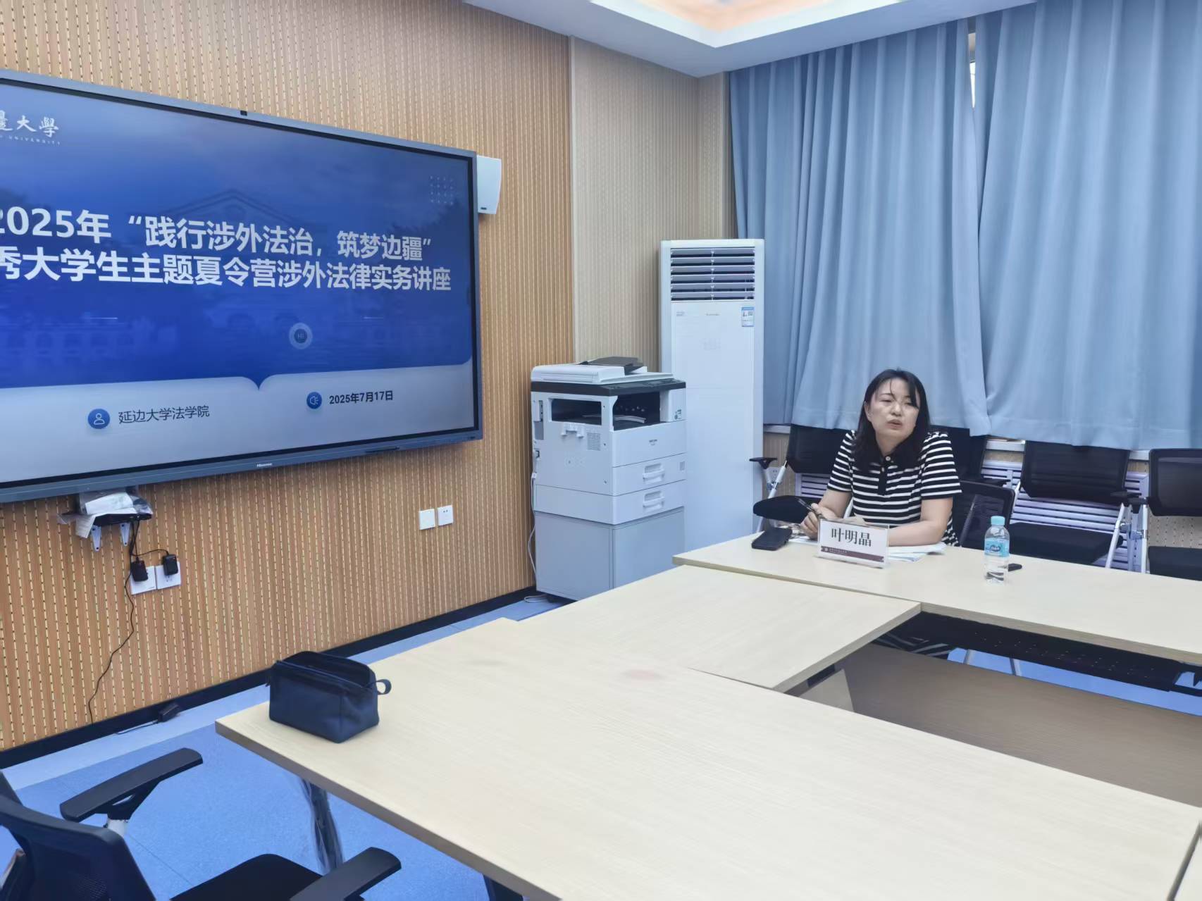 7月17日下午,学术交流活动持续推进。学术前沿讲座由吴东镐院长、民商法学学科主任李海燕主讲。延边州人民检察院检委会专职委员文昌海检察官、延边州中级人民法院民事审判第三庭副庭长叶明晶法官结合经办案件进行涉外法律实务讲座。